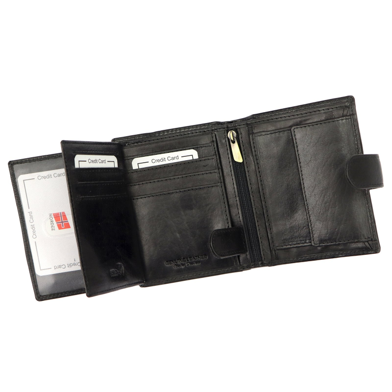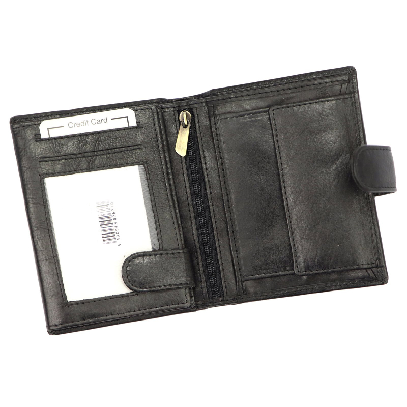 Kvalitní černá pánská peněženka z přírodní kůže, má 2 přihrádky na bankovky a jednu na kovové mince. Dále je uvnitř pánské peněženky 8 přihrádek vhodných na karty a 4 větší kapsy na technický průkaz, nebo jiné doklady. Aby bylo možno sladit celkový vzhled, lze k peněžence také zakoupit hnědý pásek a pánskou tašku.