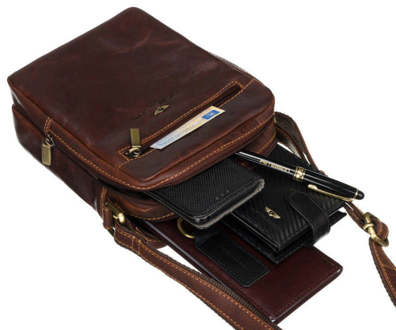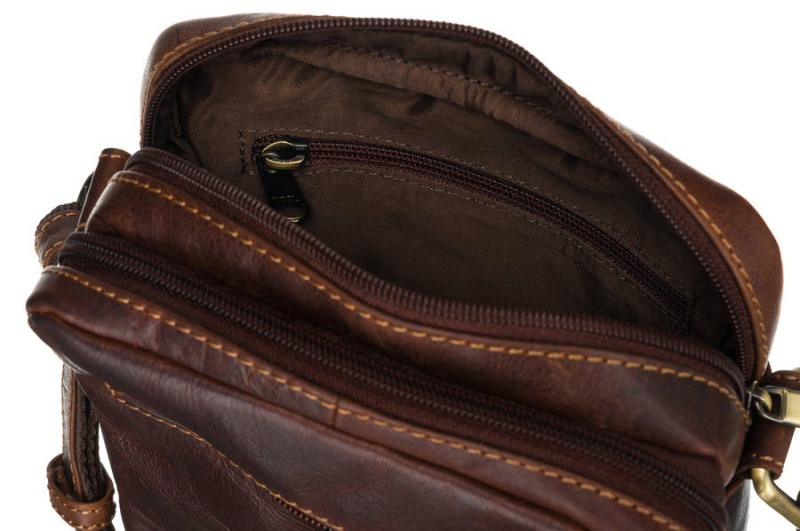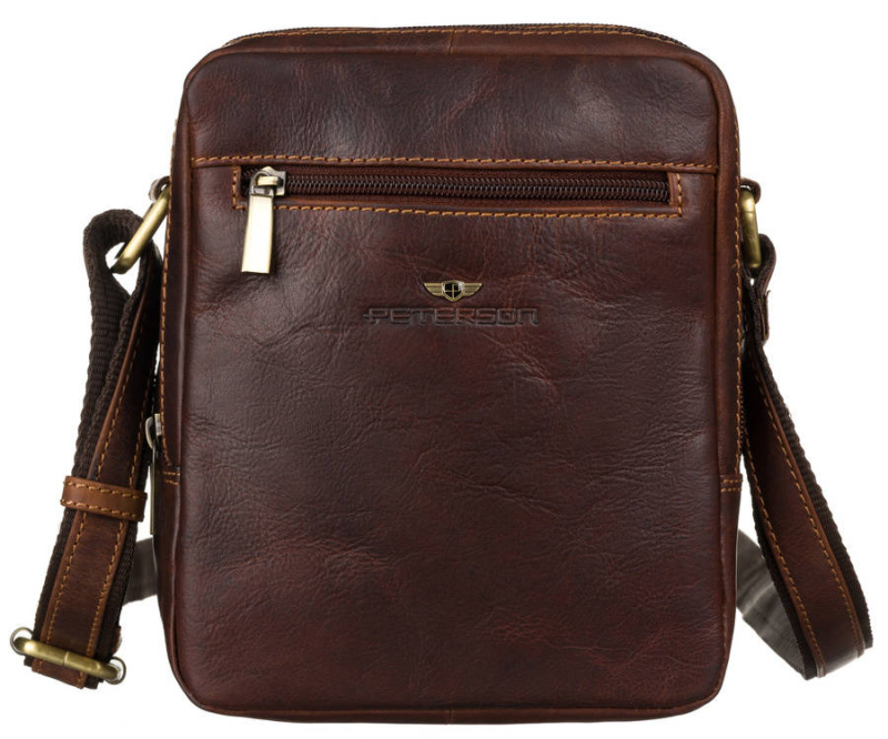 Hnědá pánská kožená taška přes rameno Peterson je vyrobena z kvalitní přírodní kůže. Pánská značková crossbody je rozdělena na dvě hlavní velké kapsy, které se uzavírá pomocí zipu a rovněž přední a zadní stran tašky je opatřena dalšími praktickými kapsami na zip.