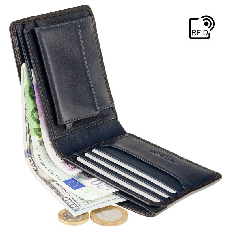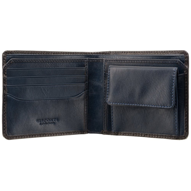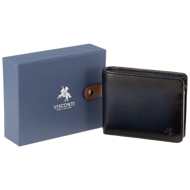 Značková pánská modrá kožená peněženka Visconti se vyznačuje na omak příjemnou měkkou prémiovou přírodní kůží v nevšedním modrém designu, který nebude mít každý, kvalitním ručním prošitím a značkovou podšívkou se znaky Visconti.